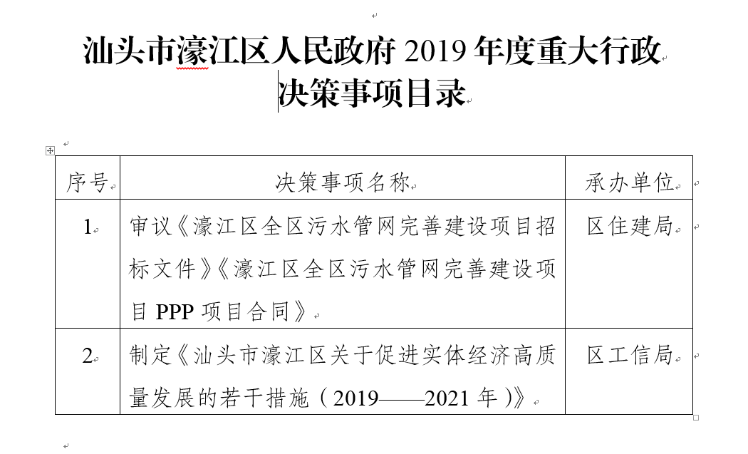 附件:汕頭市濠江區人民政府2019年度重大行政決策事項目錄