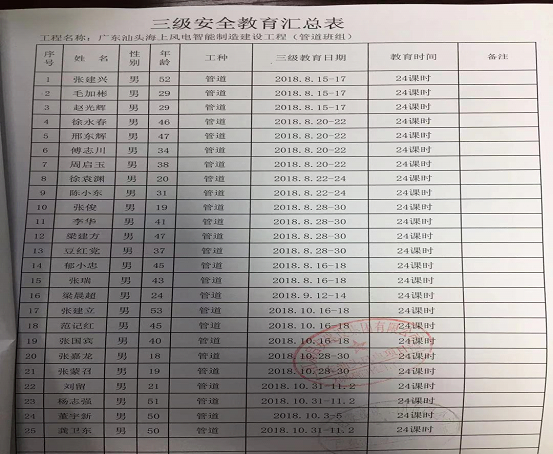 根據施工單位提供的資料顯示,2018年5月至2018年12月分別組織各班組進行培訓和考核,死者張建興曾于2018年8月15日—17日參加了該公司組織的三級安全培訓教育(詳見圖3)。