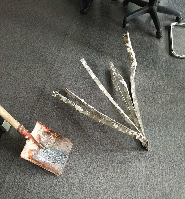 2017年5月14日23時40分左右,萬安公司生產一部制漿車間當班班長楊貴提和磨漿工梁天行巡查發現,制漿車間11號漿池口蓋子(不銹鋼材料)不見了,同時也發現當班操作工蘇占藝沒有在崗。公司立即組織現場人員尋找脫崗員工蘇占藝,一直沒能找到蘇占藝,經公司領導同意,決定對11號漿池進行重點排查,并將一樓的漿泵拆掉,對11號漿池進一步清理排漿。大約凌晨1時左右,在對11號漿池排漿過程中,生產一部制漿車間主管蘇占寧和蘇占春(死者蘇占藝的胞弟)在排漿口觸摸到蘇占藝的斷腳,于是在凌晨1時40分左右向“110”指揮中心報警并繼續排漿,在5月15日早上6時44分,死者(蘇占藝)尸體從漿池口打撈上來。后經到場的珠浦派出所進行勘查、法醫的勘驗及“120”醫務人員確認,員工蘇占藝系淹溺且受機械傷害打擊身體嚴重毀損死亡。事后,在11號漿池找到了變形的防護蓋及收漿的鏟(見圖4)。