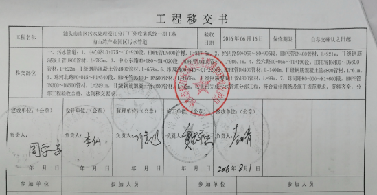 (2)事故發生的W25污水窨井位于經四路與珠河路設計界面南側,不在《工程移交書》的移交部位內。