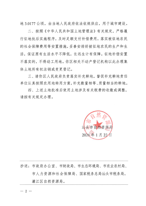2.關于汕頭市濠江區2025年度第五批次城市建設用地的批復