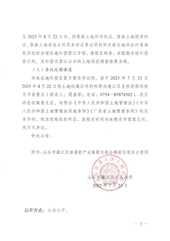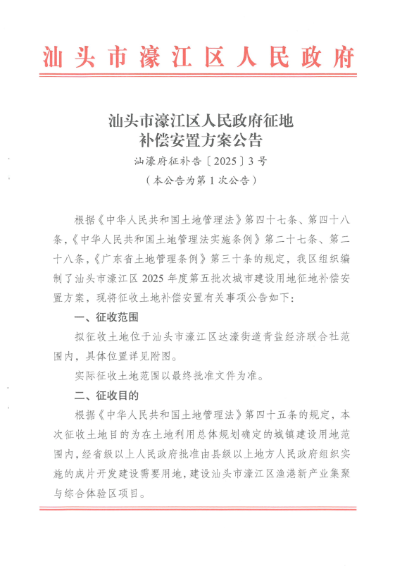 3.汕頭市濠江區人民政府征地補償安置方案公告