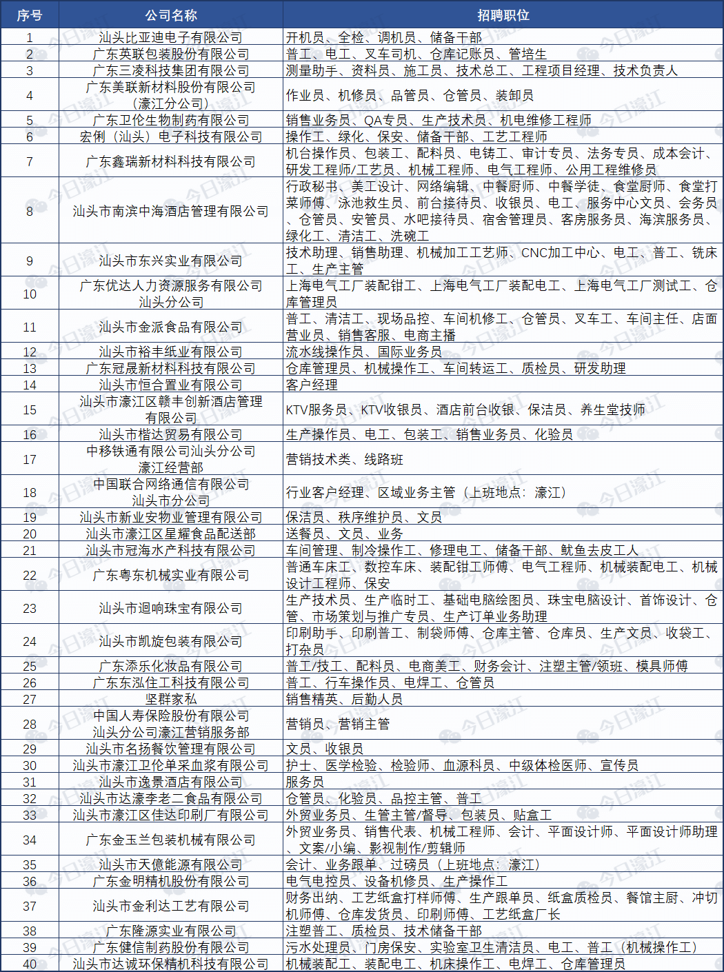 廣澳專場的職位表