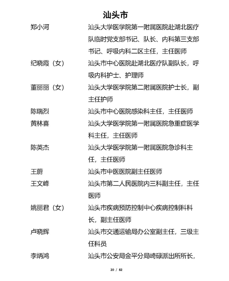 廣東省抗擊新冠肺炎疫情先進個人擬表彰對象