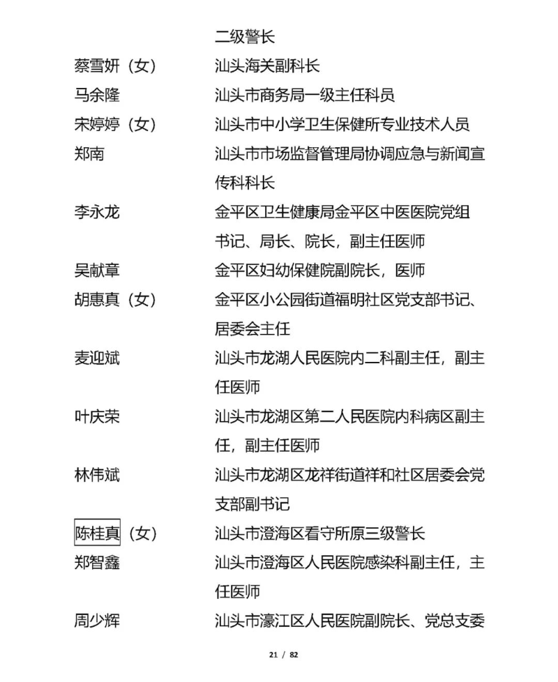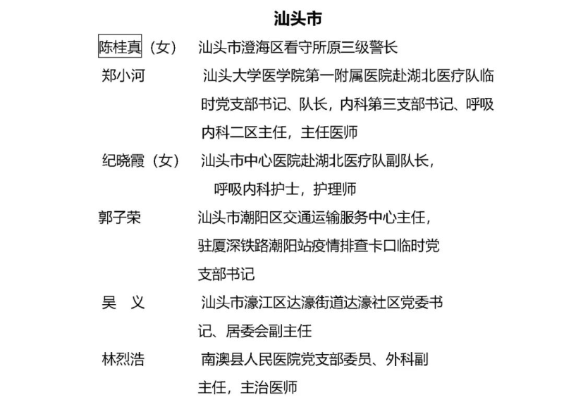 汕頭市擬受表彰對象名單