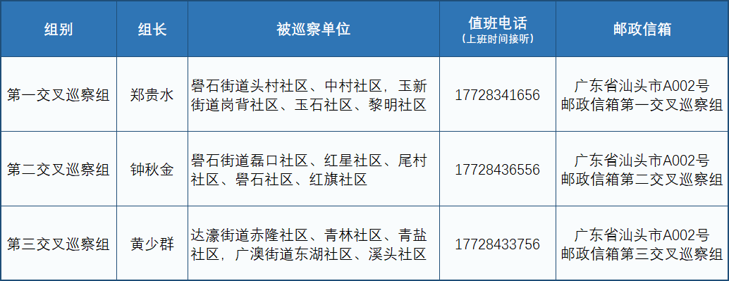 監(jiān)督郵政信箱:廣東省汕頭市A002號區(qū)委巡察辦