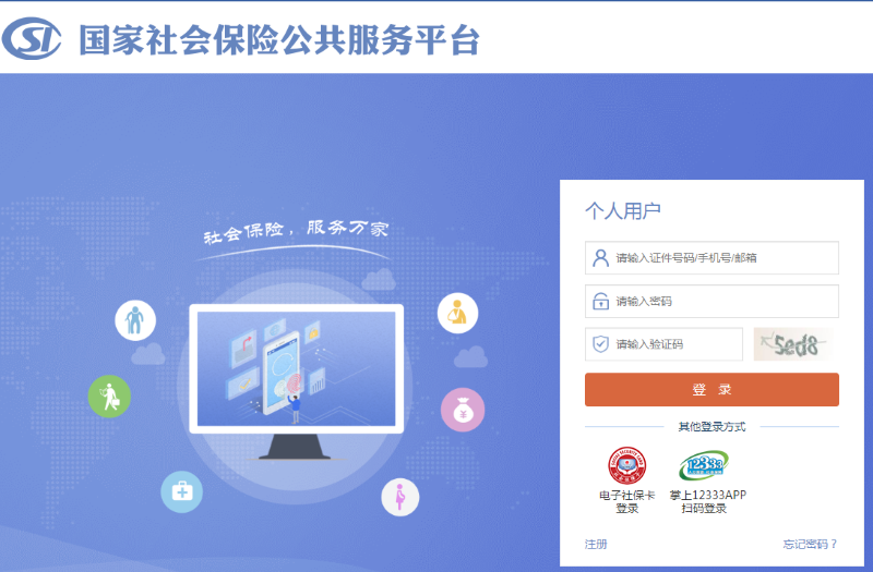 2.點擊【失業補助金網上申領】,進入個人用戶登錄界面。首次登陸請先點擊【注冊】鏈接進行注冊。