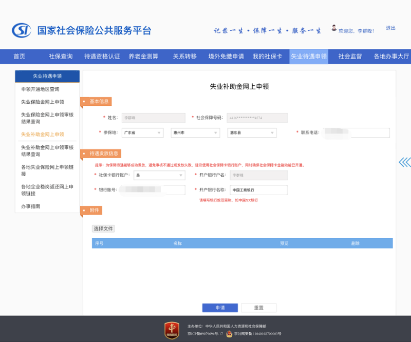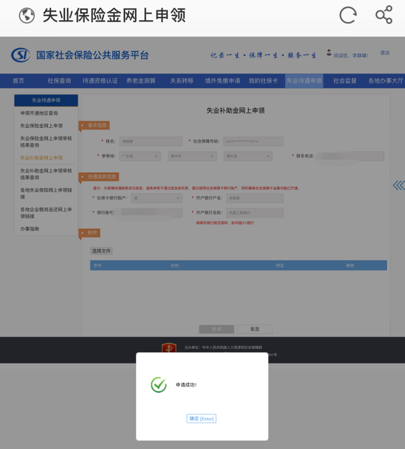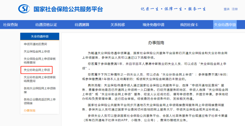 1.國家社會保險公共服務平臺 -> 失業待遇申領。