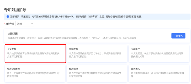 比如2021年新增子女教育扣除,需要申報填寫。