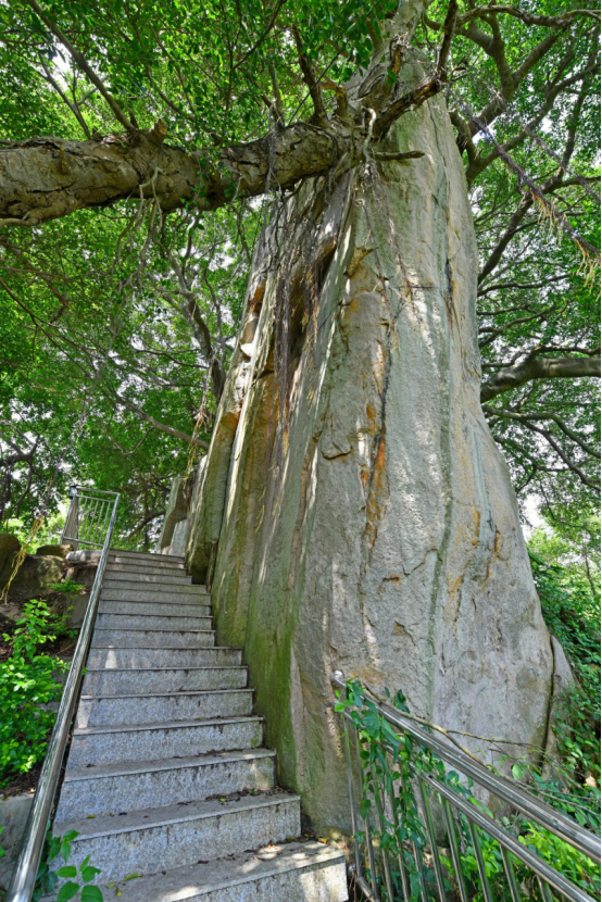 戲仔石——藍(lán)松坤召開(kāi)中共地下黨小組秘密會(huì)議遺址從下往上拍(區(qū)委黨史研究室供圖) 拍攝時(shí)間:2020年5月