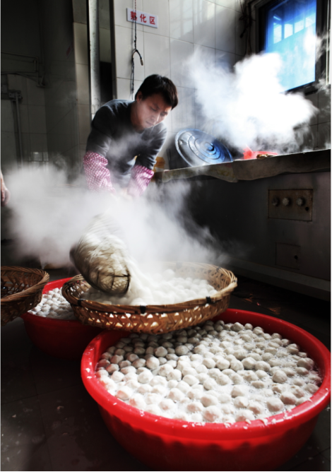 達(dá)濠魚丸制作技藝獨特且講究,主要以濠江本港優(yōu)質(zhì)海魚,如蛇鯔魚(那哥魚)、馬鮫魚、海鰻等為原料,經(jīng)沖洗、去頭去肚、剔骨、刮魚肉后,揉壓成魚糜。然后將魚糜放進(jìn)木桶內(nèi),用手掌快速用力拍打起膠,加入一定比例的蛋清、精鹽、味精和水淀粉,拍打成糜糊狀,從手心虎口舀出,放入溫水中凝固定形后,經(jīng)煮制后晾涼,食用時再烹調(diào)煮熟。成品的達(dá)濠魚丸呈白色或灰白色的圓球狀,入口魚香濃厚,口感脆爽彈牙、鮮美香甜。締造美味魚丸的傳統(tǒng)技藝至今仍無法以機器完全替代,并逐漸衍生出蝦丸、墨斗丸等產(chǎn)品。