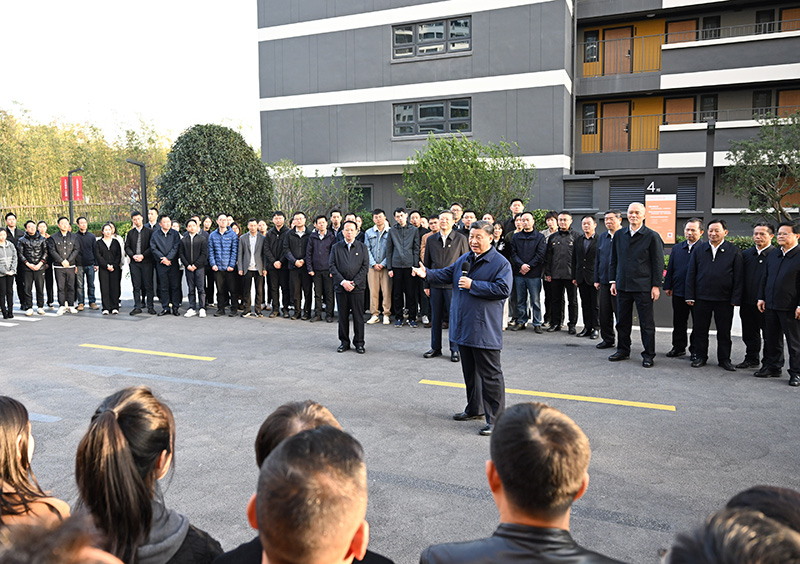 近年來,上海市加快保障性租賃住房建設,為許多來滬新市民、青年人和一線務工人員提供了住房保障。29日下午,習近平到閔行區新時代城市建設者管理者之家考察。聽了當地加大保障性租賃住房籌措建設力度、構建“一張床、一間房、一套房”多層次租賃住房供應體系的情況介紹,習近平給予充分肯定。他先后走進社區住宅型、宿舍型出租房源租戶的住房和公共廚房、公共洗衣房等共享空間,仔細了解在此居住的城市一線工作者的生活狀況??倳洘o微不至的殷切關懷,讓在場所有人感動。離開時,社區居民紛紛圍攏過來歡送總書記。習近平說,看到來自五湖四海的建設者在這里安居樂業,感到很高興。城市不僅要有高度,更要有溫度。我們的社會主義就是要走共同富裕的路子。外來務工人員來上海作貢獻,同樣是城市的主人。要踐行人民城市理念,不斷滿足人民群眾對住房的多樣化、多元化需求,確保外來人口進得來、留得下、住得安、能成業。