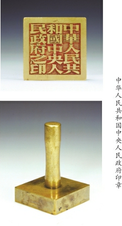 1949年10月1日,中華人民共和國中央人民政府在北京成立。在中國共產黨歷史展覽館,陳列著新中國第一枚“國印”——中華人民共和國中央人民政府印章。它曾經是國家主席或中央人民政府頒發各種法令、命令、指示和行使其他權力時鈐印公文的憑證信物,是人民政權賦予中華人民共和國中央人民政府最高權力的象征。